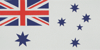 The Royal Australian Navy adopted the Australian white ensign in 1967. The Australian white ensign is an Australian National Flag with a white background. It is flown from the stern of naval vessels. The Australian National Flag is flown from the bow.