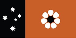 It includes the 3 official Northern Territory colours, black, white and red ochre, and a stylised version of the Territory’s floral emblem, the Sturt’s desert rose.